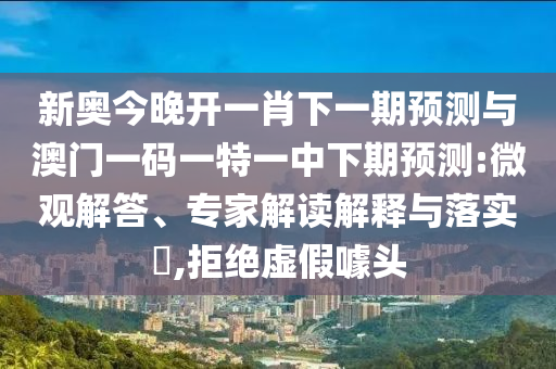 新奧今晚開一肖下一期預測與澳門一碼一特一中下期預測:微觀解答、專家解讀解釋與落實?