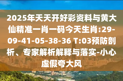 2025年天天開好彩資料與黃大仙精準一肖一碼今天生肖:29-09-41-05-38-36 T:03預防剖析、專家解析解釋與落實-小心虛假夸大風