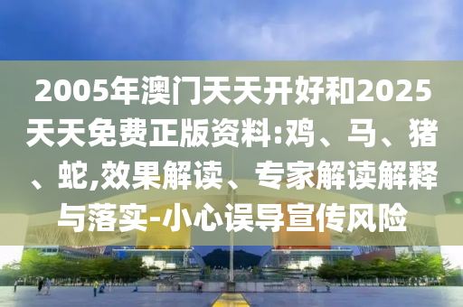 2005年澳門天天開好和2025天天免費正版資料:雞、馬、豬、蛇,效果解讀、專家解讀解釋與落實-小心誤導宣傳風險