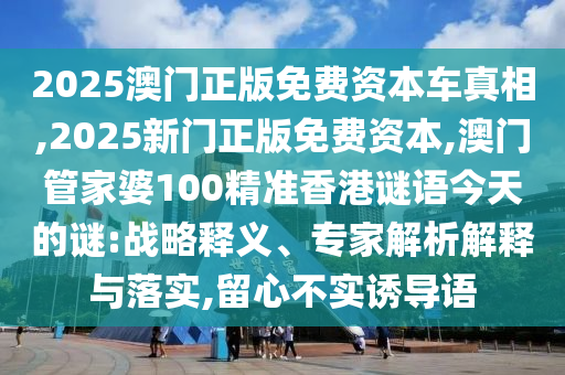 2025澳門正版免費資本車真相,2025新門正版免費資本,澳門管家婆100精準(zhǔn)香港謎語今天的謎:戰(zhàn)略釋義、專家解析解釋與落實,留心不實誘導(dǎo)語
