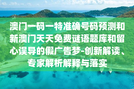 澳門一碼一特準確號碼預測和新澳門天天免費謎語題庫和留心誤導的假廣告夢-創(chuàng)新解讀、專家解析解釋與落實