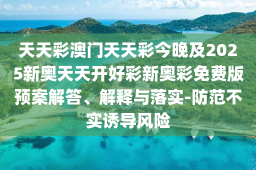 天天彩澳門天天彩今晚及2025新奧天天開好彩新奧彩免費版”的預(yù)案解答、解釋與落實,以及防范不實誘導(dǎo)風(fēng)險的警示