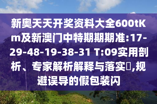 新奧天天開獎資料大全600tKm及新澳門中特期期期準:17-29-48-19-38-31 T:09的實用剖析、專家解析解釋與落實?